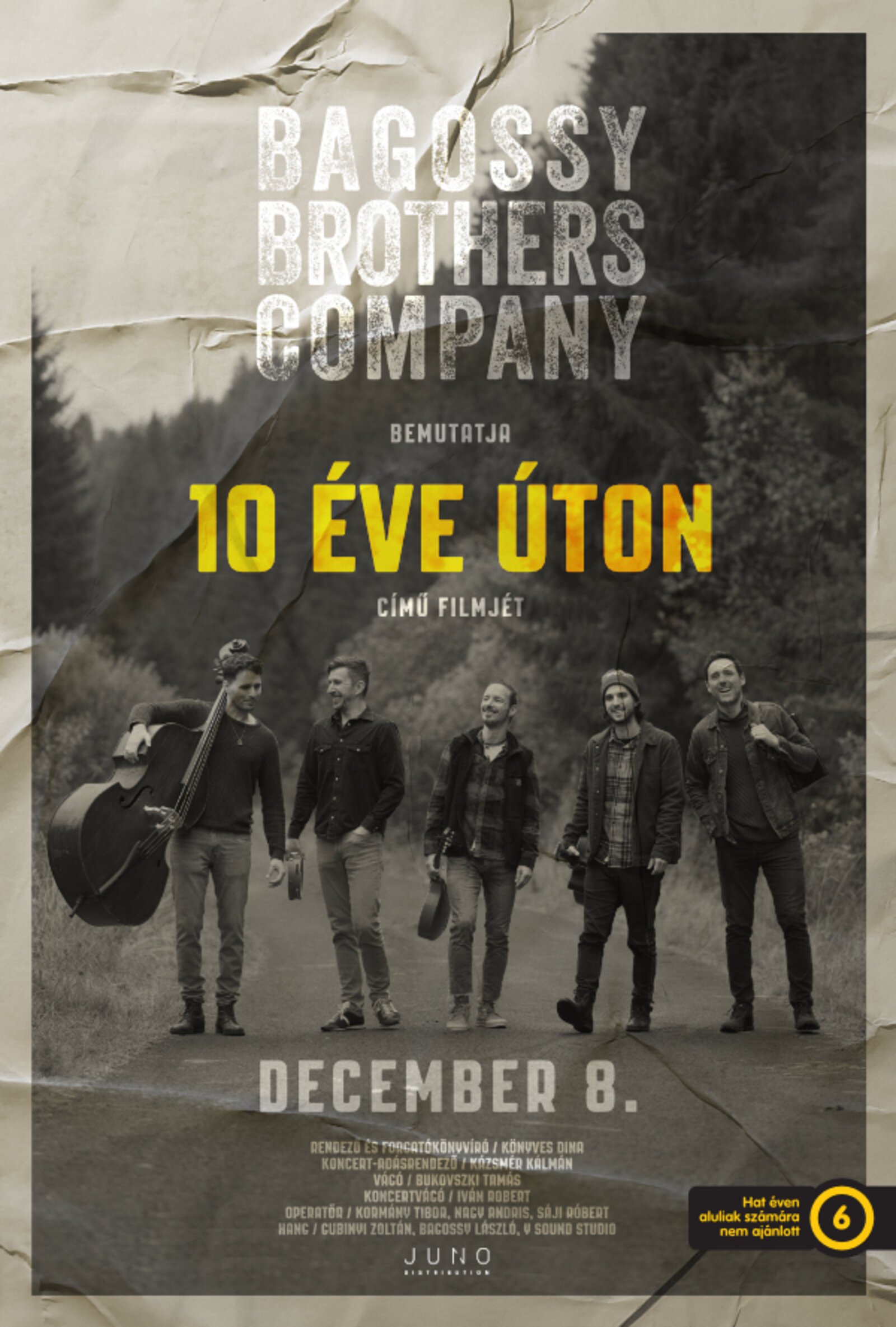 Tíz év története egy egész estés mozifilmbe sűrítve, eddig nem látott tartalmakkal, interjúkkal és persze az MVM Dome-os koncert legjobb pillanataival a mozivásznon! A Bagossy Brothers Company – 10 éve úton című egész estés alkotás az erdélyi kezdetektől egészen a budapesti jubileumi nagykoncertig követi nyomon a pop, rock és folk stílust egyedi módon ötvöző banda útját, sok-sok zenével, látványos koncertfelvételekkel, valamint a zenekar tagjait és hátterét is részletesen bemutató interjúkkal. Páratlan moziélmény – nemcsak a zenekar széles rajongó táborának, hanem azoknak is, akik még csak most ismerkednek a gyergyói ötösfogat zenei világával. A film igazi csemege minden zenerajongónak, hiszen sosem látott felvételeket mutat és izgalmas kulisszatitkokba avatja be a nézőket.