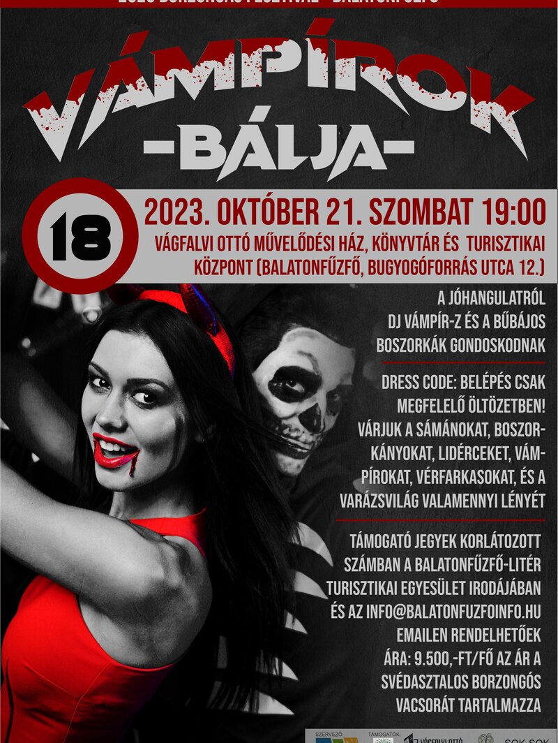 Idén is lesz Vámpírok bálja Balatonfűzfőn. A helyszín változik, a nagy érdeklődésre tekintettel a Vágfalvi Ottó Művelődési Ház színháztermében tartjuk ezt a rendezvényt! Készüljetek, mert mi is nagyon készülünk rátok!
