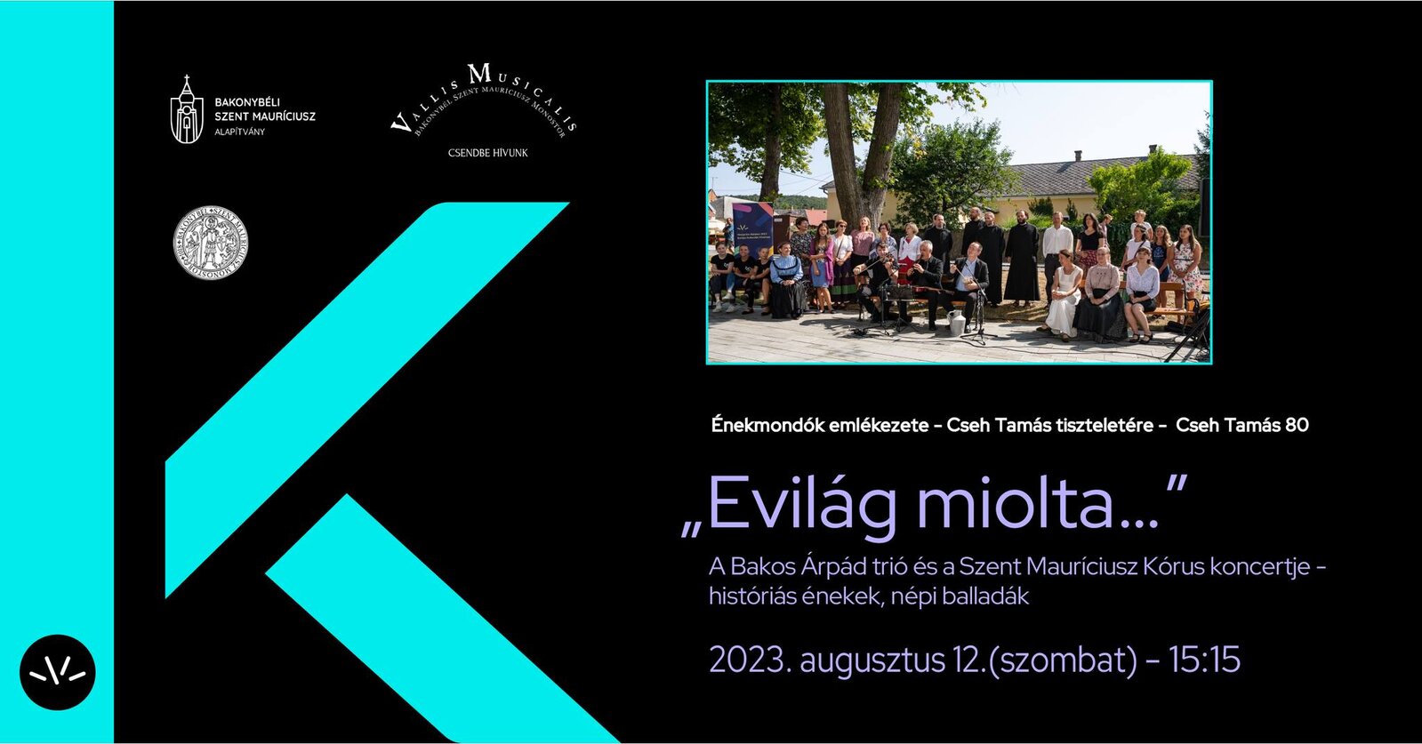 A 2022-es nagy sikerű „Kodály 100” projekt után 2023-ban ismét közös munkába fog a bakonybéli Szent Mauríciusz Kórus és a vajdasági Bakos Árpád trió. Ezúttal a históriás énekek és a népi balladák világából merített dalokat tanulnak közösen a nyári workshop keretében, melyeket a Cseh Tamás tiszteletére rendezett Énekmondók emlékezete programon adnak elő.A programon a részvétel díjtalan.Esőhelyszín: Faluház