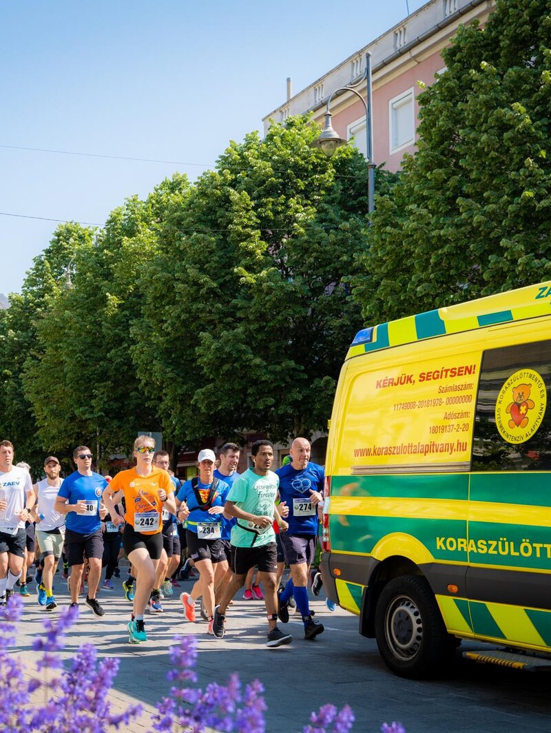 - 9.00-9.15 Rajt - A koraszülöttmentő felvezetésével futnak ki a futók Zalaegerszegről.