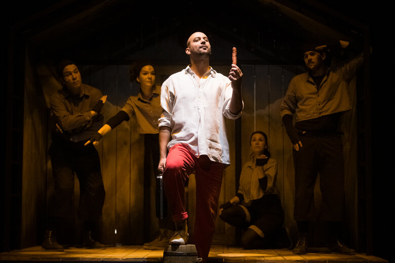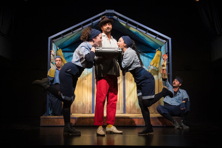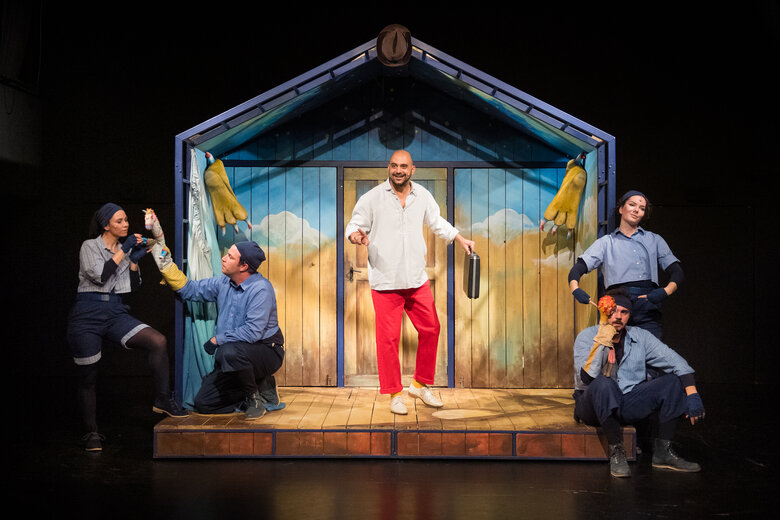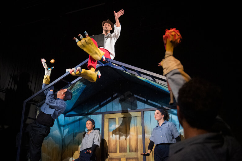 Vásári forgatag kesztyűsbábokkal, mozgásszínházi elemekkel, nép- és elektronikus zenével, fénnyel, földdel, vízzel, levegővel és rengeteg humorral, a magyar népmesekincs egyik kevéssé ismert, de rendkívül mozgalmas darabja nyomán.