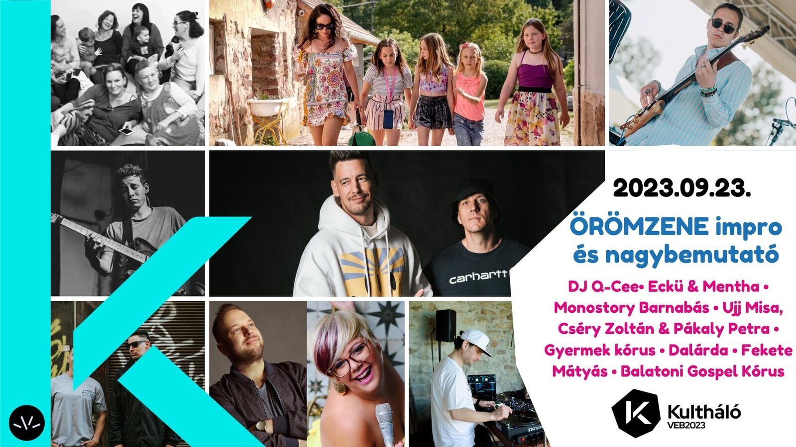KULTHÁLÓ//Színes falu, színes ház #6 2023.09.23. ÖRÖMZENE impro és nagybemutató: DJ Q-Cee , Eckü, Mentha, Monostory Barnabás, Ujj Misa, Cséry Zoltán + Pákaly Petra, Gyermek kórus, Dalárda, Fekete Mátyás, Balatoni Gospel Kórus és Sabina