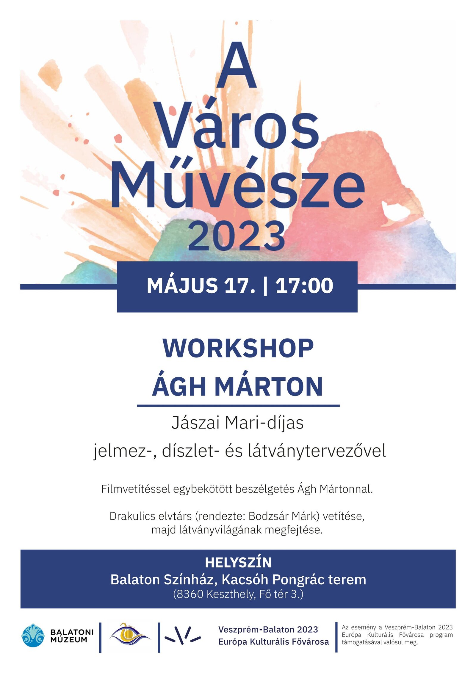 Ágh Márton Jászai Mari-díjas látvány-, díszlet- és jelmeztervező filmvetítéssel egybekötött beszélgetése.