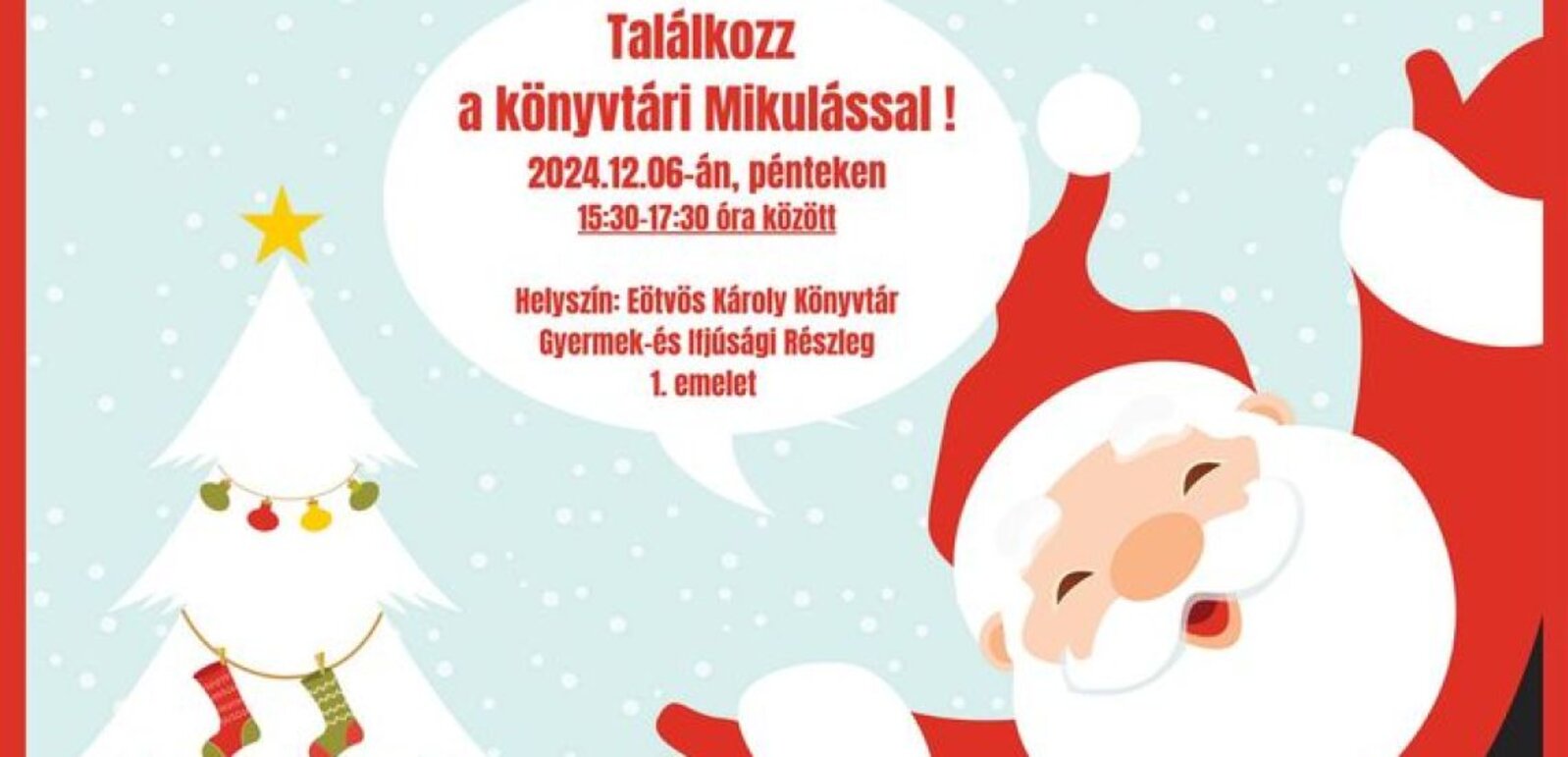December 6-án az Eötvös Károly Könyvtár Gyermekkönyvtárába érkezik a Mikulás.