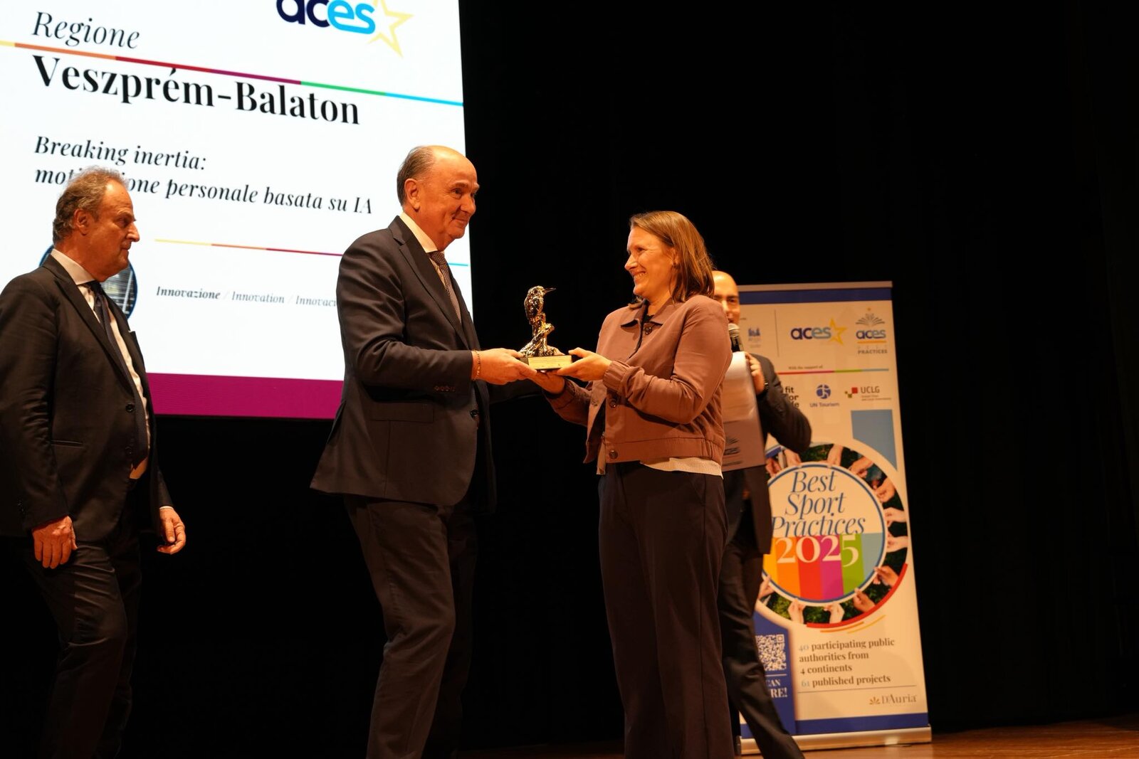 Újabb nemzetközi elismerést gyűjtött be a Veszprém-Balaton Európa Sportrégiója 2026 kezdeményezés. Az olaszországi Ascoli Picenóban megrendezett ACES „Best Sports Practices” világkongresszuson programunk az innováció kategóriában hozta el az első díjat, bizonyítva a térségi sportkoncepciónk és közösségi összefogásunk egyedülállóságát.