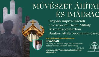 Improvizációs Orgona Est 07.08. Veszprém Összművészet Művészet, áhitat és imádság címmel orgona improvizációt ad elő Dankos Attila orgonaművész, Veszeli Lajos festőművész alkotásaira. Szent Mihály Főszékesegyház 8200 Veszprém, Vár utca 27 2023. 07. 08. 20:00 - 21:00