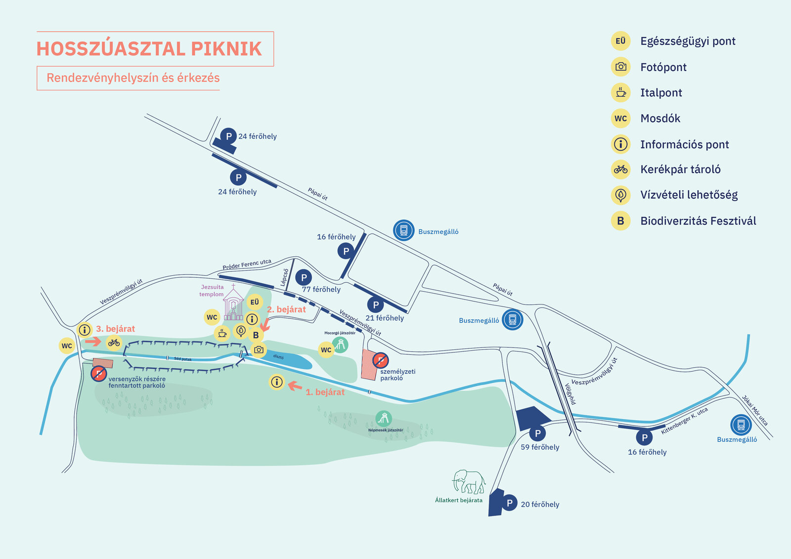 A várható magas látogatószám és a környék véges parkolási lehetőségeinek megfelelően a veszprémi lakosokat arra kérjük, hogy amennyiben lehetőségük van rá, valamilyen autótól eltérő közlekedési eszközt válasszon, hogy a más településekről érkezők könnyebben találjanak szabad helyeket.